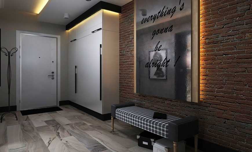 Организация коридора в квартире не требует больших затрат, так как в отделке допускается натуральный кирпич, бетон и дерево с эффектом старины. Цветовая гамма не ограничивается темными оттенками. Также можно использовать светлую палитру с контрастными деталями.