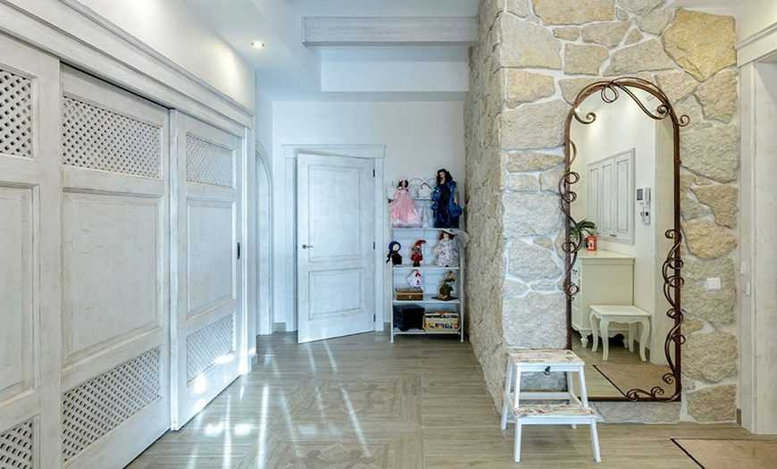 Многие предпочитают убрать лишние двери, а именно гостиной, оформив дизайн дверного проема в прихожей при помощи декоративной арки. Такой способ актуален, разгружает пространство, делает его более открытым и оригинальным.