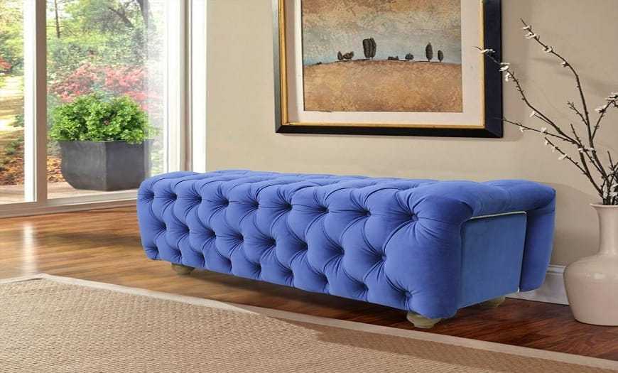 Ключевое назначение пуфа – обеспечение комфорта в квартире. Эта мягкая мебель производится без спинки и подлокотников, но обладает устойчивой и лаконичной конструкцией, на которой можно удобно сидеть. Пуфы от стандартного комплекта имеют высоту 40-45 см и глубину от 30-40 до 50-60 см.