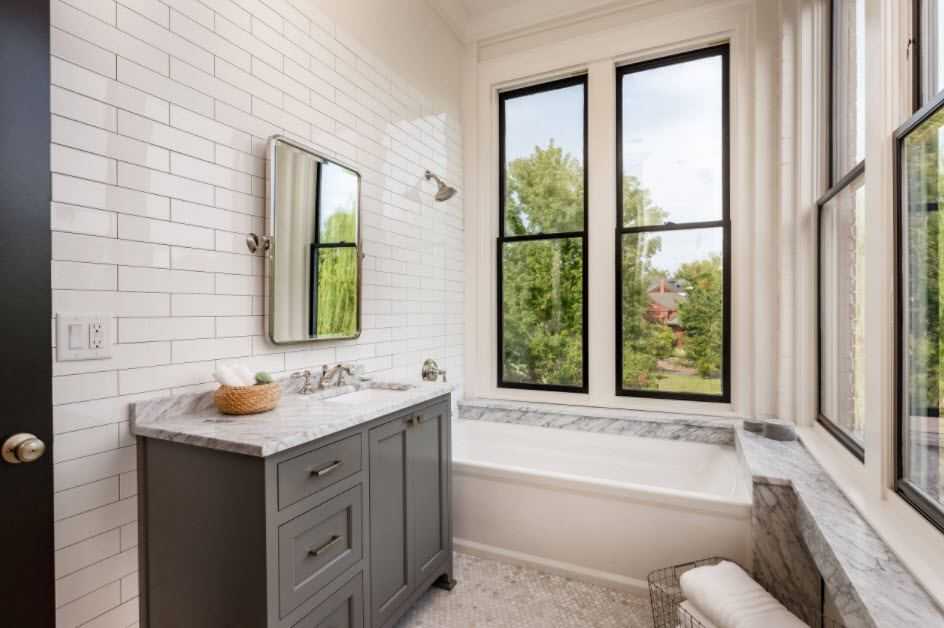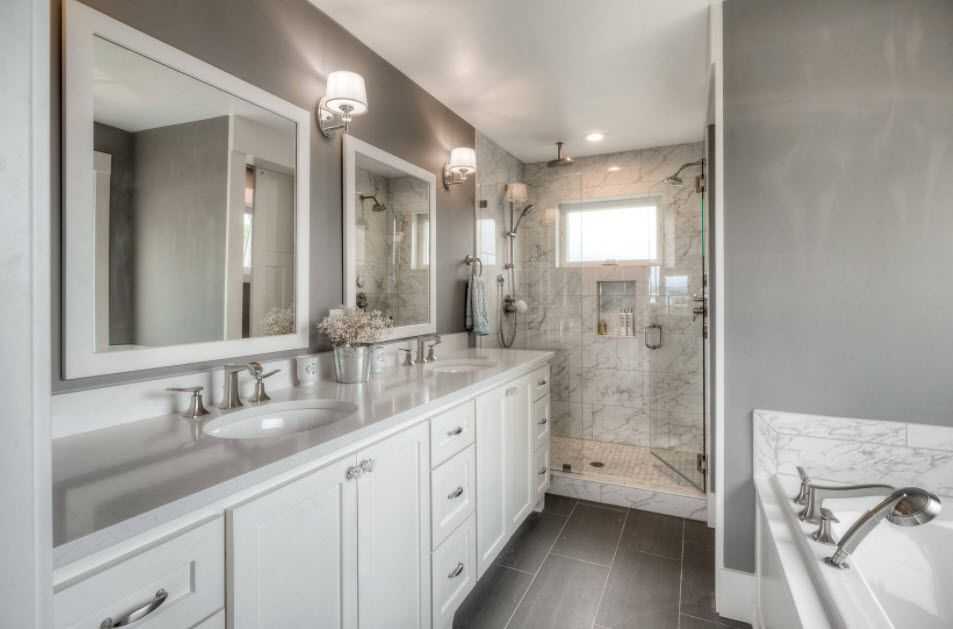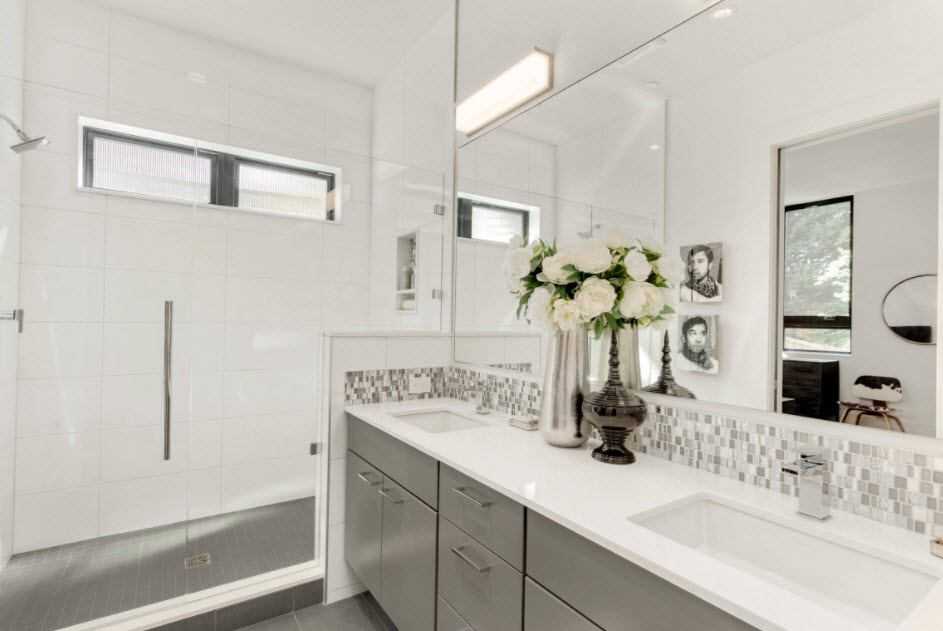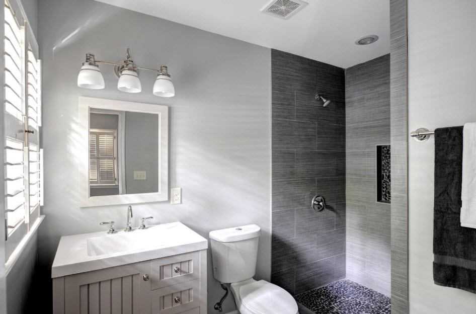 Избыток вызывает угнетение нервной системы. Серыми могут быть отдельные зоны: душевая, место над мойкой, оконные откосы.