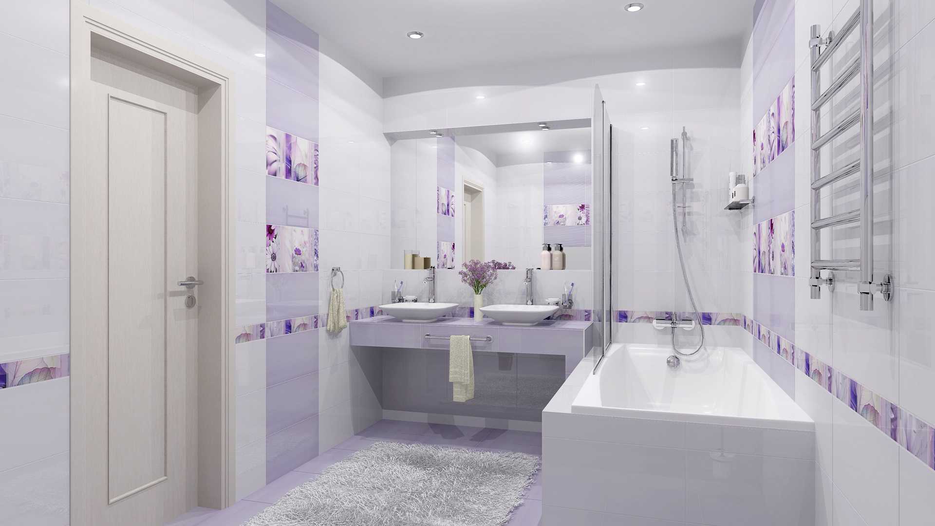 Цвета керамической плитки для ванной отлично сочетается с желтым и золотистым. Дизайнеры вводят серые тона в сочетание с фиолетовым, что придает эксклюзивность интерьеру. Цвет состоит из красного и синего. плитка двух цветов в ванной оказывает влияние на психику может быть как успокаивающим, так и возбуждающим.