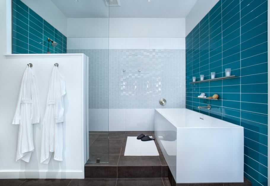 Самыми привычными цветами для оформления ванной комнаты стали те, которые подчеркивают свежесть, чистоту и даже стерильность помещения. Ведь именно за очищением и оздоровлением многие приходят в санузел.