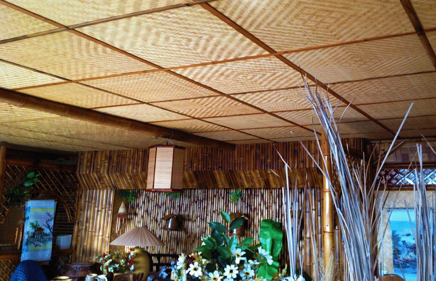 Бамбуковые плиты. Изготавливается вручную, путем тщательного переплетения высококачественного бамбукового теса. Имеют разный размер, отличаются также по количеству слоев. Материал можно использовать и для отделки пола, он устойчив к влажности, хорошо сохраняет тепло, обладает высокими звукоизолирующими свойствами.