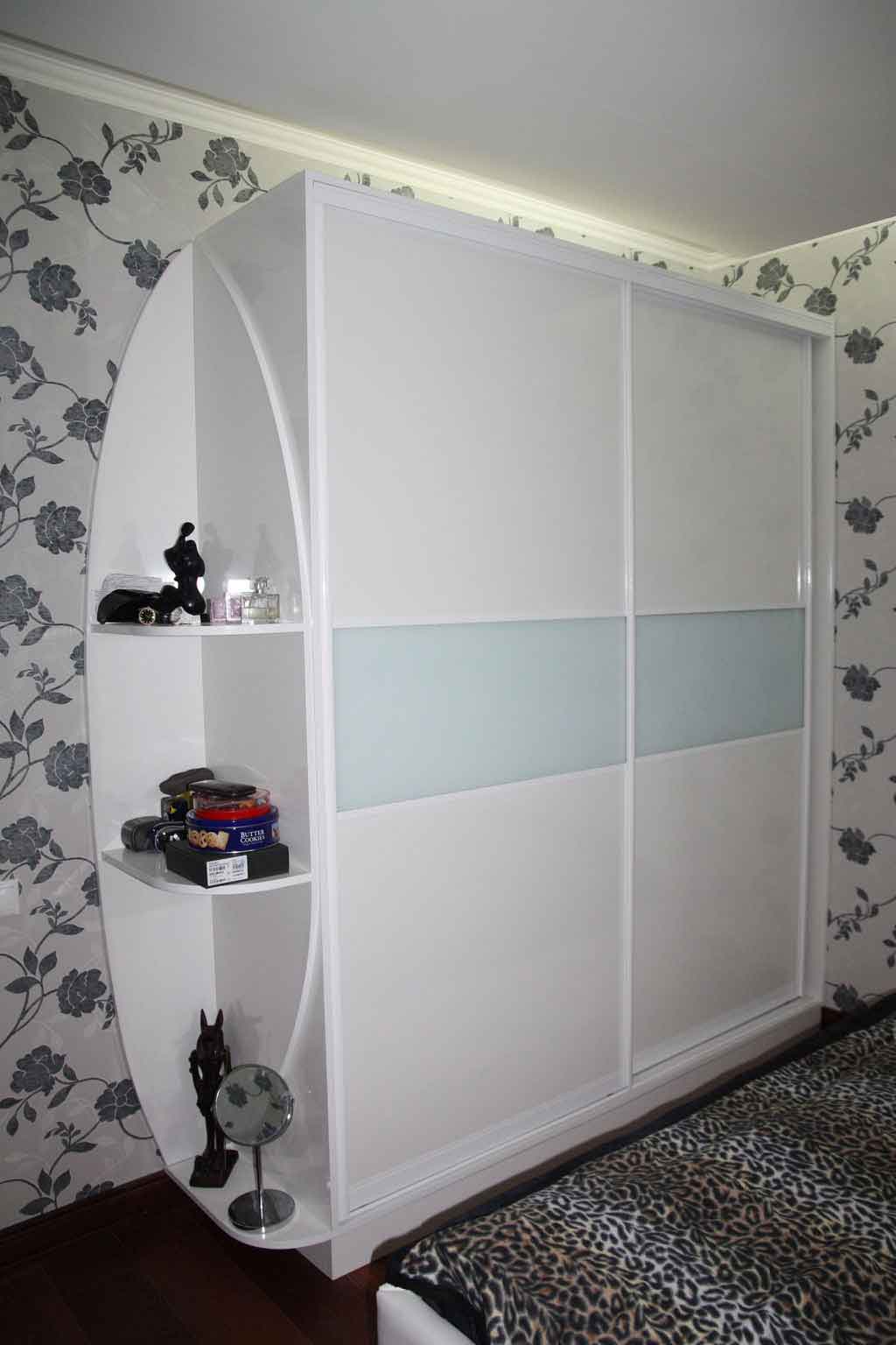 - разбавить белизну можно яркими акцентами – вставками иного цвета в виде изысканной росписи на шкафу спальни, забавных наклеек на поверхности дверец детской, зеркальными дверцами с пескоструйным напылением в прихожей (примеры на фото);