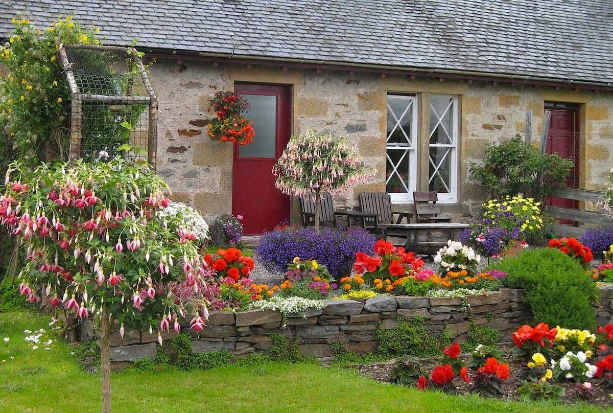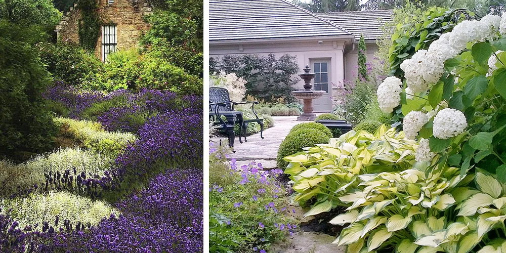 В садах романтического стиля наблюдаются травы, деревья и кусты