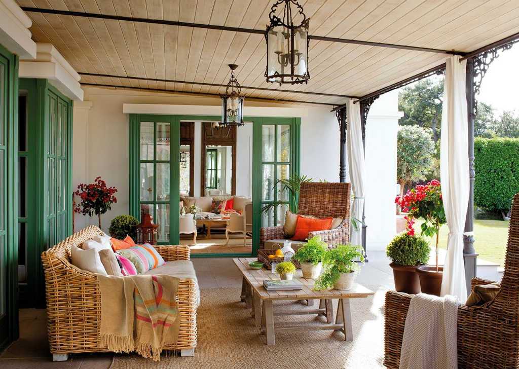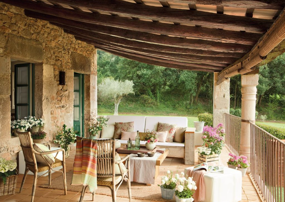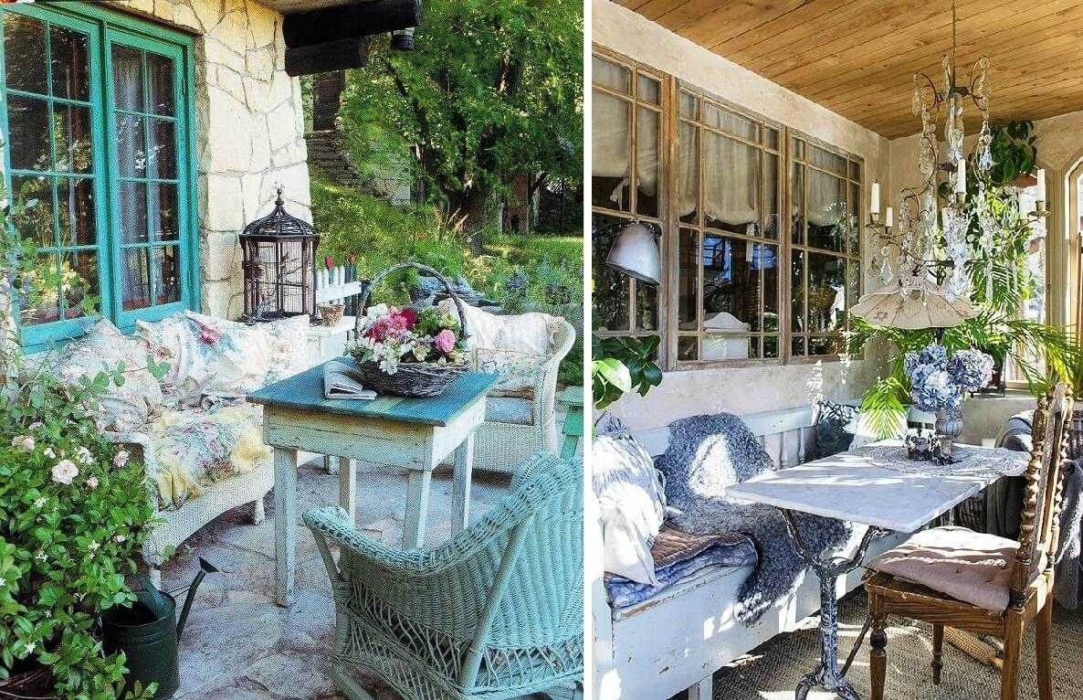 Если выстроить стиль прованс на всем участке сложно, стилизуйте только один маленький кусочек территории. Хороший вариант – создать уединенное пространство в глубине сада в виде увитой виноградом беседки. Внутри положите подушки и покрывала пастельных тонов с растительными узорами, подберите винтажные кованые светильники, развесьте под потолком букетики лаванды и других ароматных трав.