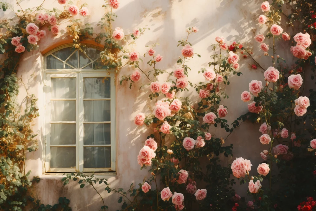 Розы во французском саду обычно почвопокровные и плетистые: длинными побегами увивают фасад дома, заборы, подпорные стенки, арочные конструкции, перголы и беседки. Для вертикального озеленения можно использовать зимостойкие сорта винограда культурного, девичий виноград, лимонник китайский и актинидию.