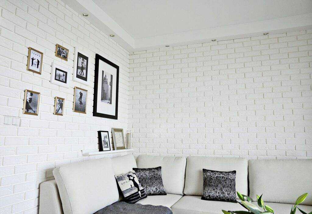 Имитация кирпичной кладки из белого материала будет красиво смотреться и в жилых комнатах.