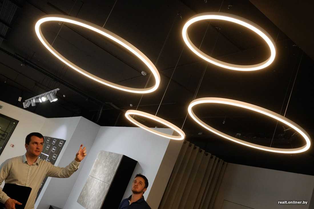 — Перед вами люстра из светодиодных лент. Она почти не дает света, но является ярким арт-объектом, способна подчеркнуть современную концепцию интерьера и стать его смысловым ядром.