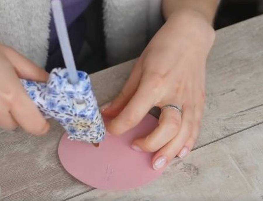 Теперь нужно вложить одну половину в другую и сшить их по краю. Также желательно проклеить край половинок.