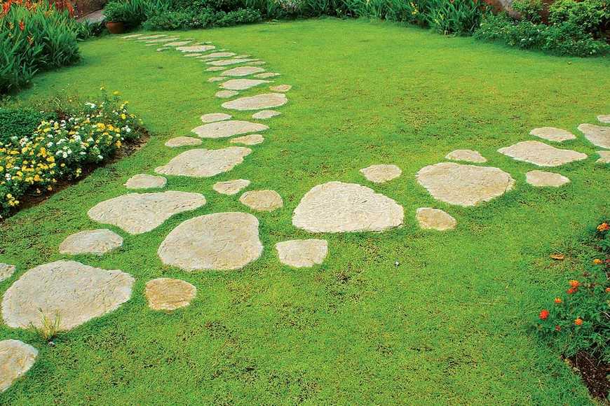- уложить камни на расстоянии, позволив им обрасти газонной травой;