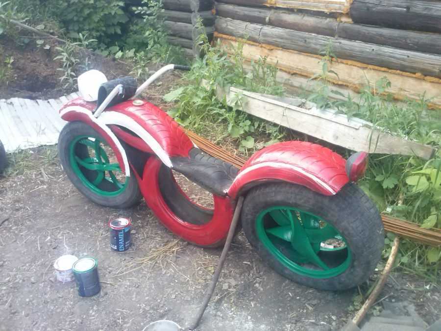 Не менее интересно выглядит мебель из шин. Дешево, прочно, быстро – идеально для дачного участка. Из покрышек вы можете соорудить кофейный столик, табуретки, качели – предметы, не требующие специальных навыков для их изготовления.