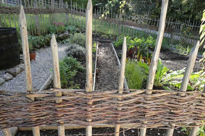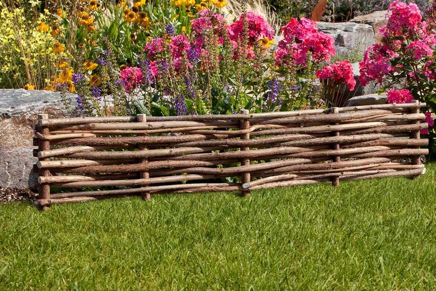 Интересно выглядит декоративное ограждение дачи из лозы. Плетёная ограда считается классикой деревенского стиля. Она легко делается своими руками и хорошо сочетается с зелёными насаждениями.