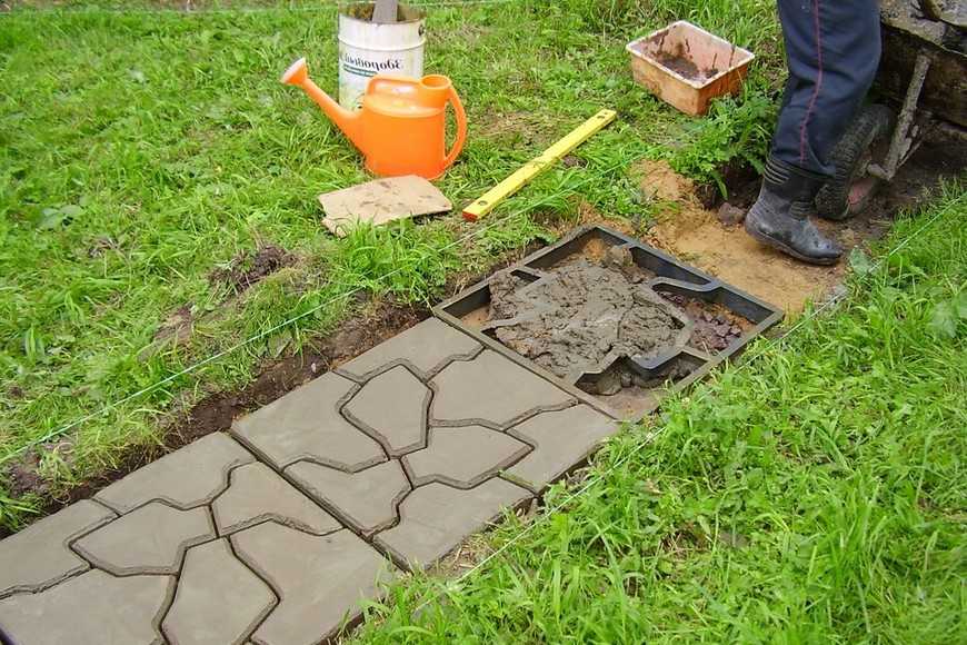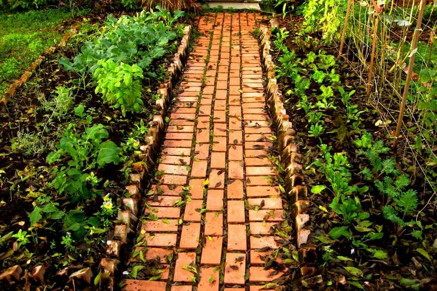 Для формирования дорожки достаточно подготовить траншею глубиной в 15 см, уложить слой глины и засыпать мелким гравием. Укрепить и украсить дорожку можно с помощью брусчатки.