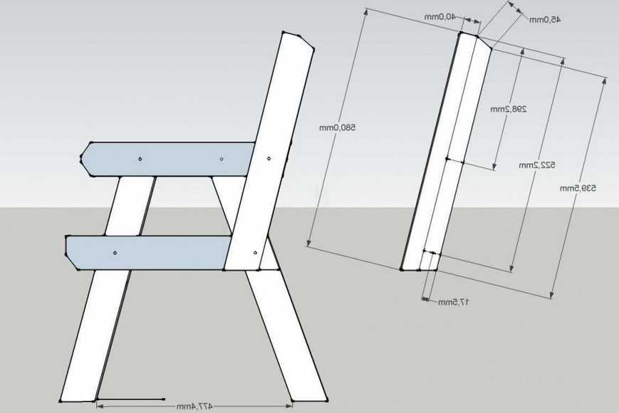 Дешёвую и красивую лавочку на дачу можно сделать из старых стульев. Надо только снять с двух или трёх стульев сидения, прижать заготовки друг к другу и прибить сверху доску подходящей длины.
