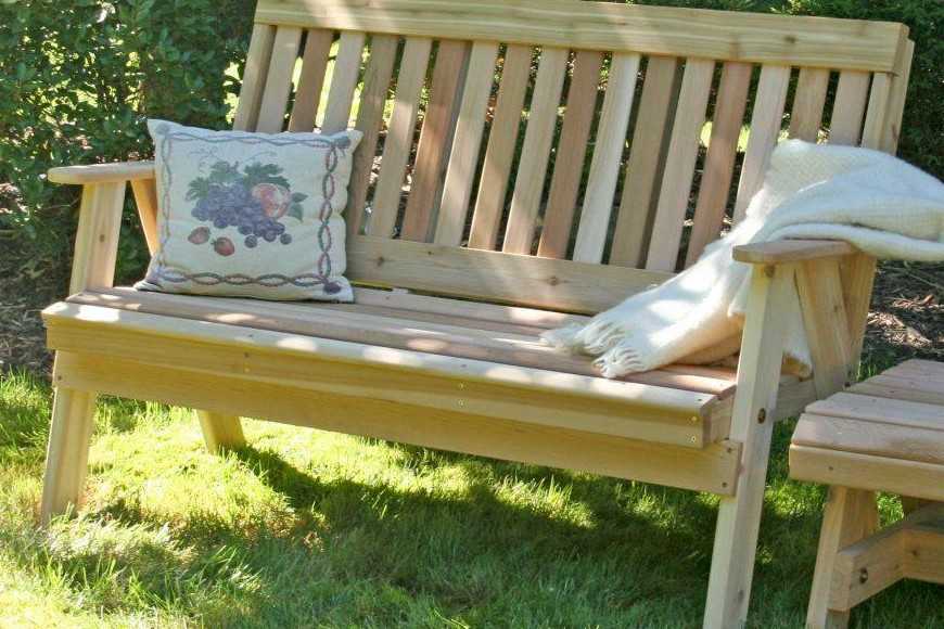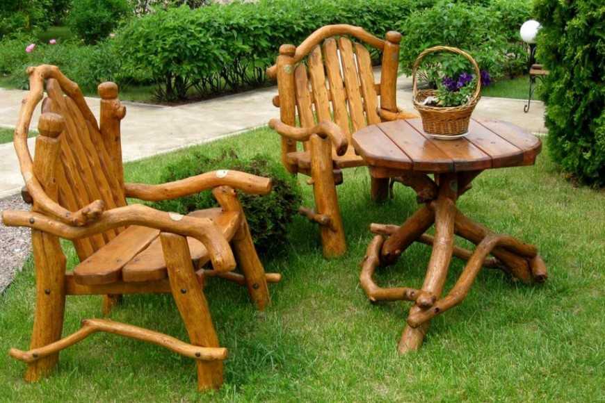 Из обрезков досок или поленьев делают оригинальную мебель для сада и дачи. Чтобы она не вышла из строя в первый же год, поверхность пропитывают влагостойкой грунтовкой по дереву. Из древесины производят кресла, столики, лавочки, стулья для сада.
