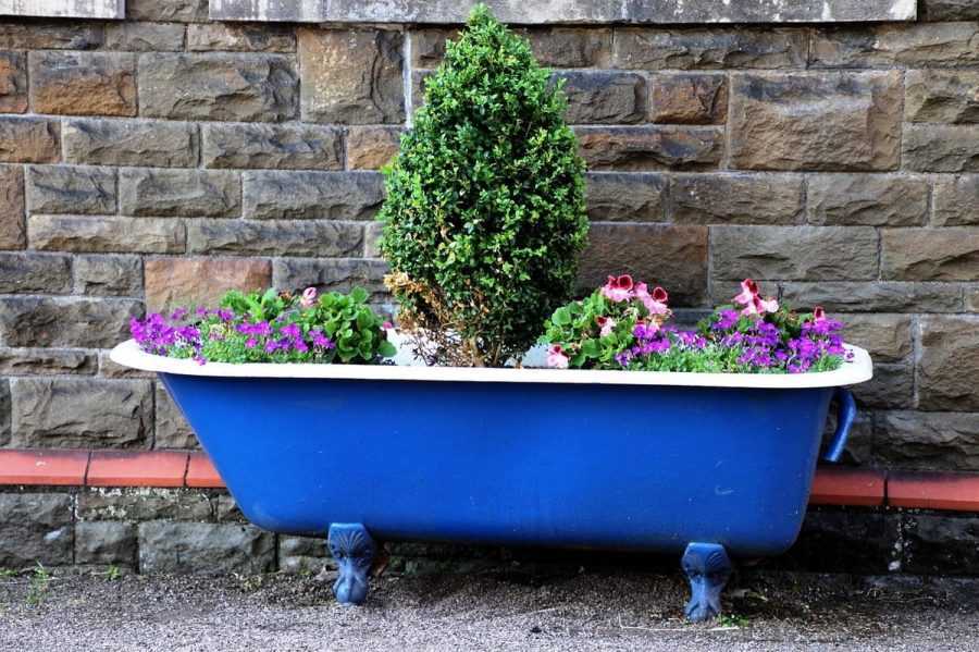 Сделать полноценный фонтан или искусственный водоем довольно сложно. Но если у тебя остались ненужные пластиковые или акриловые ванны, чаши и другие емкости, их можно смело использовать при оформлении маленького оазиса.