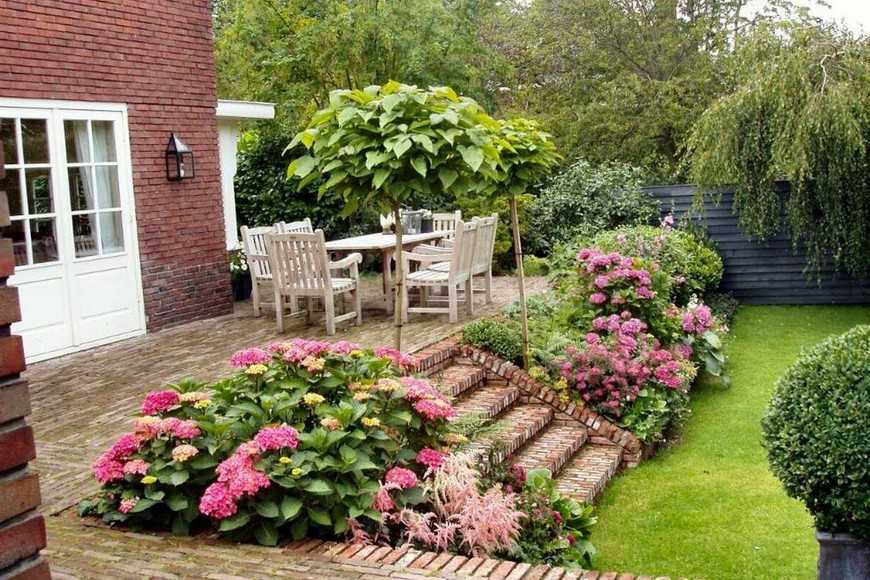 Классический сад – это обилие цветов, ровные линии и углы, минимум декора. Материалы имитируют природные