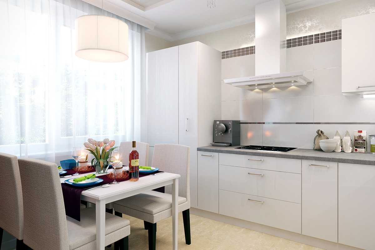 Кухня средних размеров дает возможность провести зонирование, выделить места для приготовления и употребления пищи. Это можно сделать с помощью расположения осветительных приборов и отделочных материалов. Использование различных оттенков мебели и обоев также позволяет реализовать данную идею. Наличие балкона или лоджии является большим преимуществом, так как путем демонтажа перегородок можно расширить площадь помещения и задействовать дополнительное пространство. Обычно в этом месте оформляют зону для отдыха, устанавливают обеденный стол.