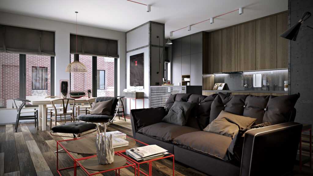 Объединение комнаты с кухней. Это решение позволит сформировать просторную и стильную студию.