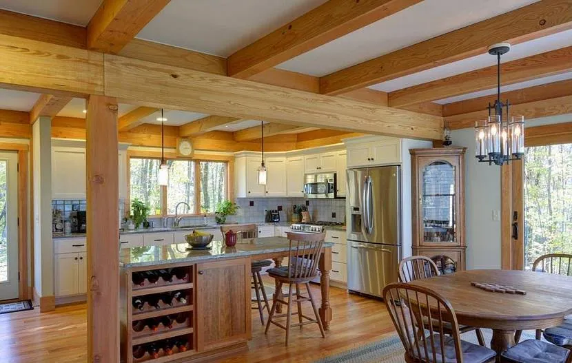 Поверхность пола должна быть выполнена из древесины или керамики. На кухонной зоне потребуется монтаж системы теплый пол.