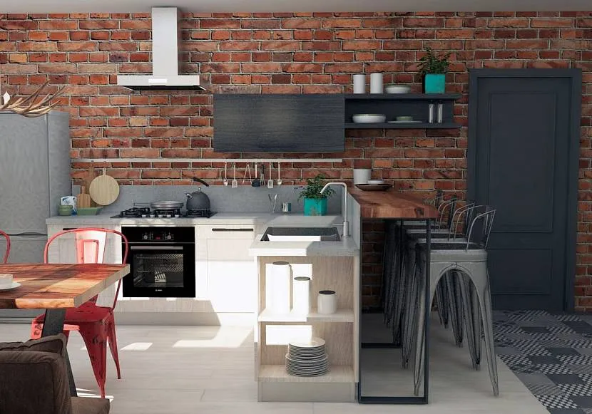 Разграничителем может служить барная стойка или обеденный стол. Но данный вариант не подойдет для комнаты маленькой площади. В стесненных условиях допускается объединение прохода и пространства, предназначенного для перемещения хозяйки вдоль рабочей зоны во время приготовления пищи, при условии, что ширина общего участка составит не менее 120см. Такого расстояния вполне хватит для того, чтобы не создавать помех ни одному члену семьи, ни другому.