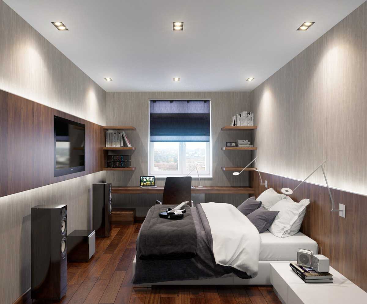 в узкой спальне – это всегда компромисс между удобством и функциональностью.