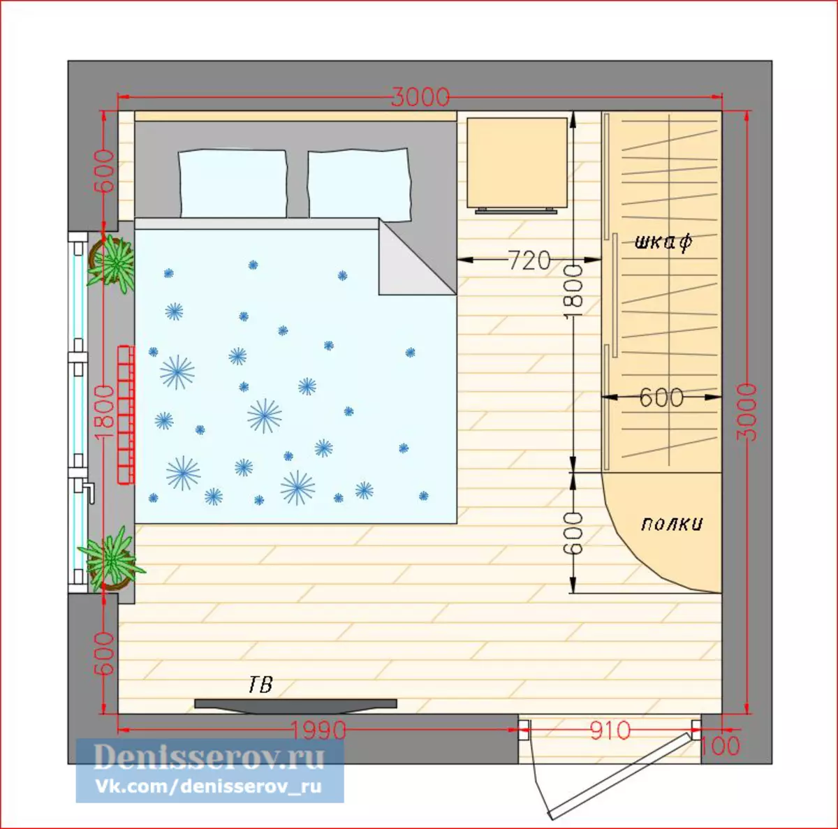 Бесспорный плюс планировки 3 на 3 (или даже 2,8 на 3,3 метра) – это правильная, почти квадратная форма. Варианты расстановки мебели при такой площади можно посмотреть в фотоподборке ниже.