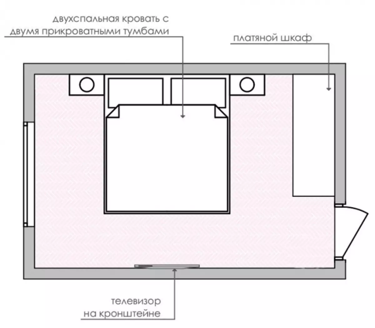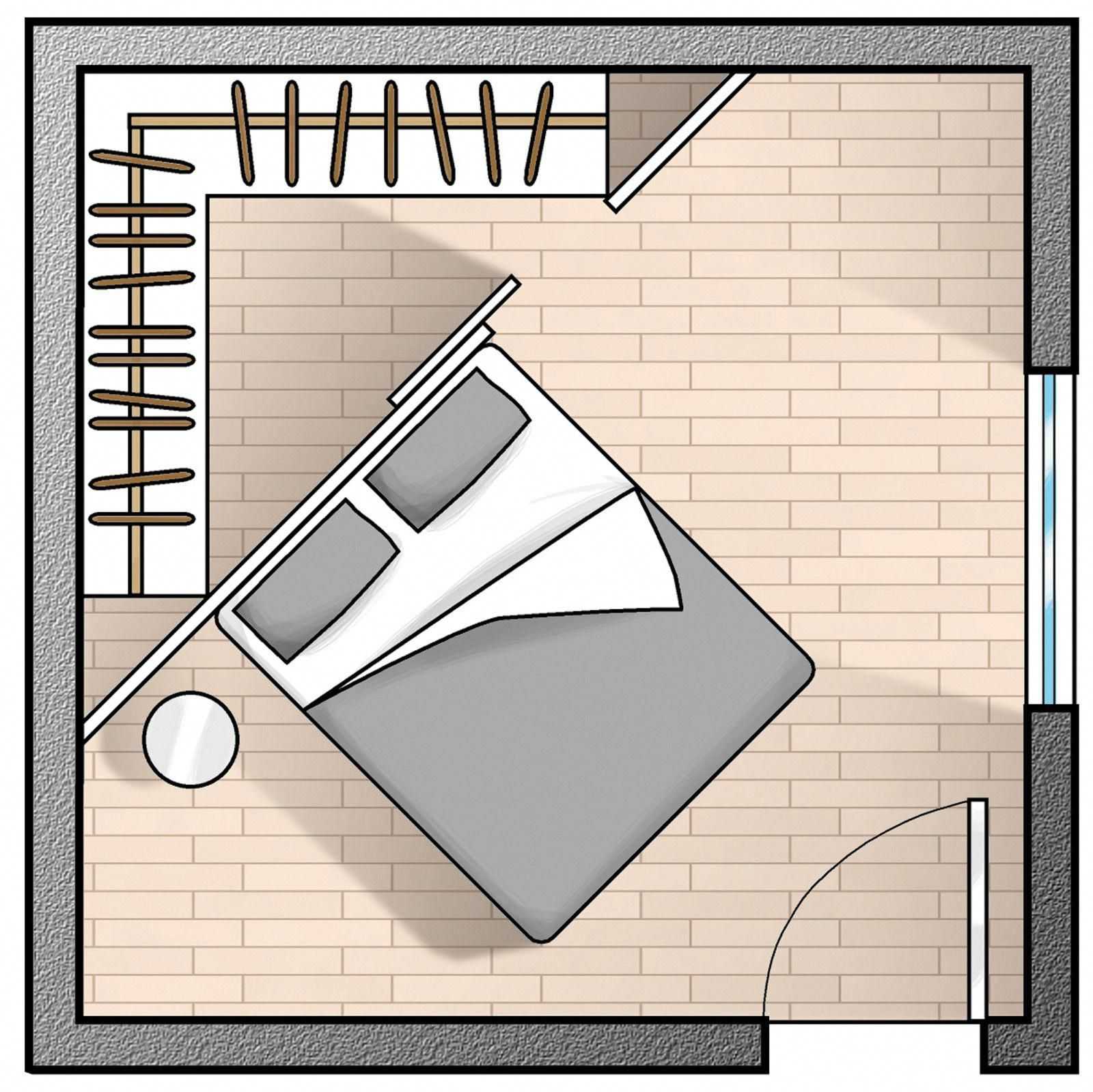 Расстановка мебели – самый ответственный этап при создании планировок для спальной комнаты. Для того чтобы расставить предметы мебели правильно, вам нужно составить эскиз и обозначить на нём место, где будет установлено спальное место. Отталкиваясь от этого, нужно подобрать оптимальное расположение остальных предметов в мебели.