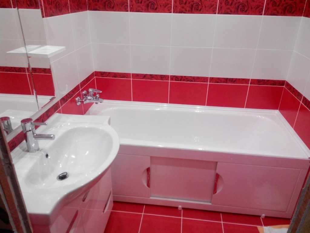 Например, для ванной в японском стиле. Эпатажно смотрится вариант дизайна в красных тонах, но он требует большого пространства.