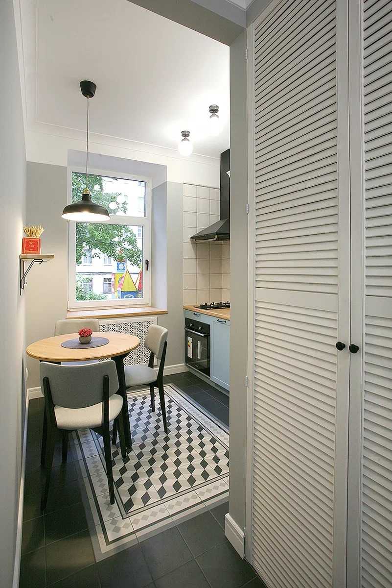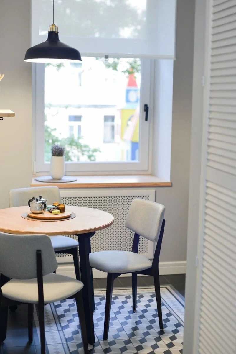 Если разобрать стену между кухней и комнатой, получится студия. Помещение площадью около 17–18 кв. м. может стать столовой и комнатой для приготовления пищи.