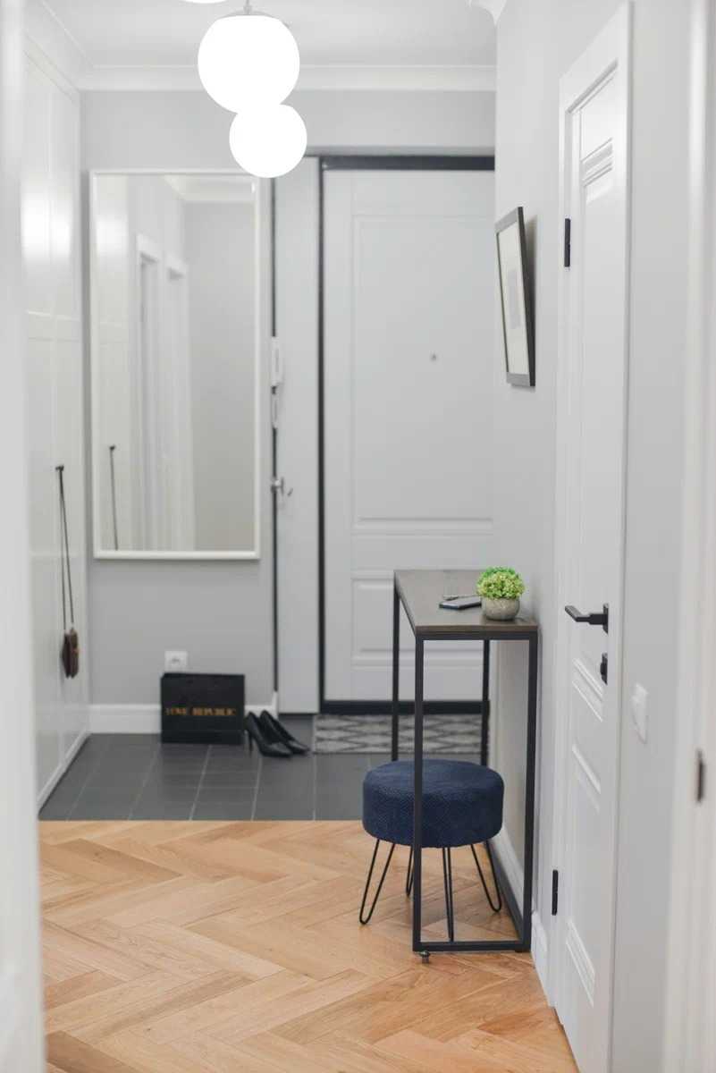 Оформление прихожей очень важно в квартирах для посуточной аренды, поэтому при проектировании ей было уделено особое внимание. Все материалы отделки прихожей — износостойкие