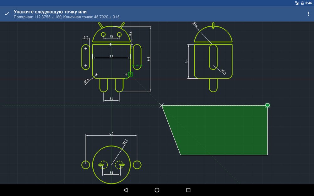 С помощью САПР Нарисуй чертеж! можно с нуля построить чертежи различного назначения, которые будут соответствовать стандартам ГОСТ и ISO. Проект разделяется на изображения в отдельных окнах, что упрощает взаимодействие с ним, учитывая особенности относительно небольших экранов смартфонов. В окне помещаются проекция, тексты и другие фрагменты. По плоским проекциям чертежа через приложение можно преобразовать проект в трехмерную 3D-модель, затем отправить на экспорт в формат DXF.