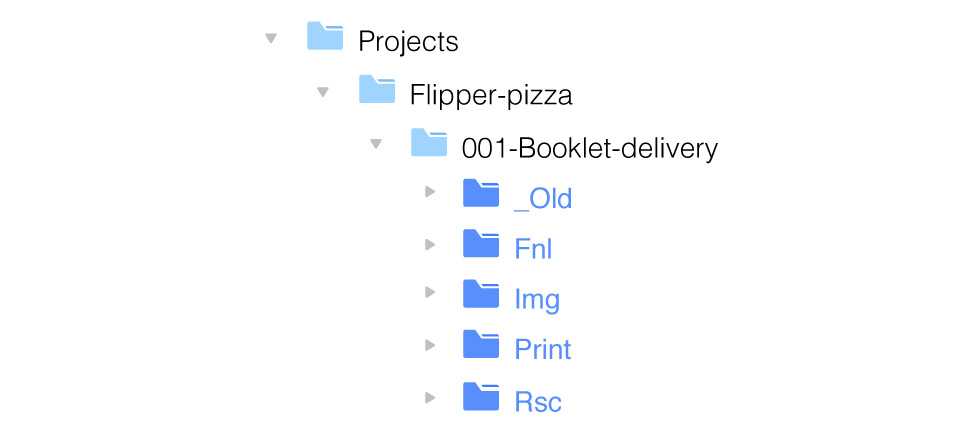 Еще я классифицирую папки внутри проектов по статусу: Old, Fnl и типу: Print, Img, Rsc.