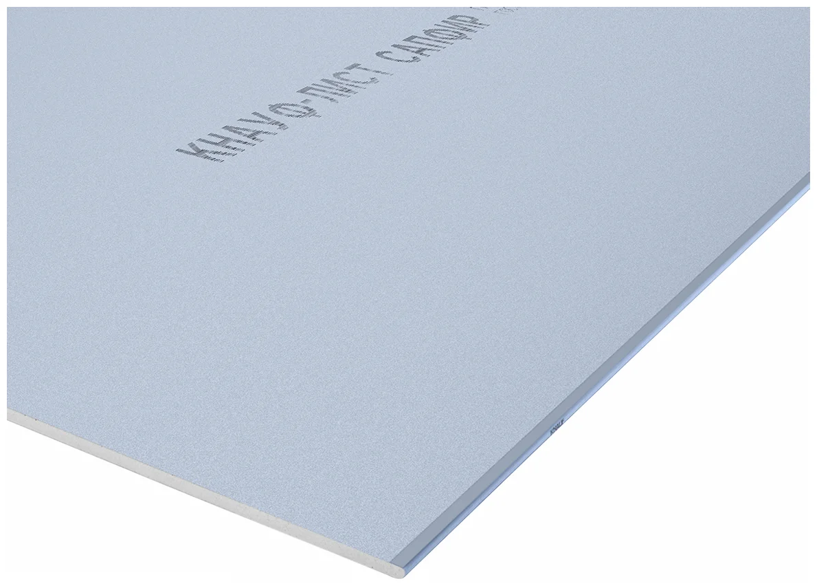 ГКЛВ. Пропитан водоотталкивающими компонентами, это позволяет использовать его в помещениях с повышенной влажностью — ваннах и санузлах. Стоит учесть, что при долгом контакте с водой материал все же может пострадать.