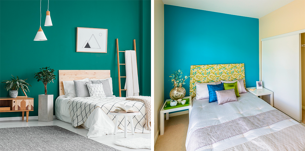 Если вы хотите выделить цветом стену, то выбирайте самую узкую — так она станет зрительно ближе и комната не вытянется