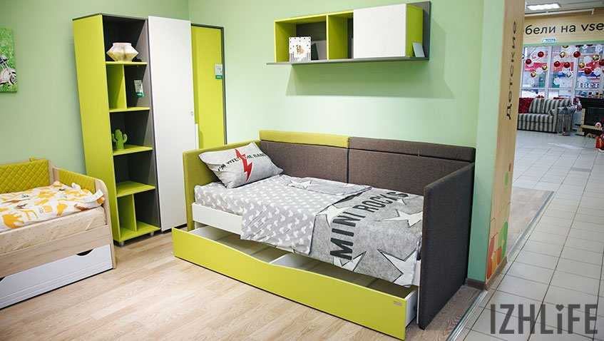 Кровать с выдвижным спальным местом и коробом для белья для взрослых — высокое основание с изголовьем, чаще всего без спинки. Изделия для подростков и младших школьников — модульные конструкции, иногда двухъярусные с лестницей, ведущей на второй этаж. Мебель для детей от 0 до 3 лет — прямоугольный каркас, со всех сторон окруженный бортиками. Основные требования, предъявляемые к таким моделям — безопасность, удобство, комфорт и экологичность.