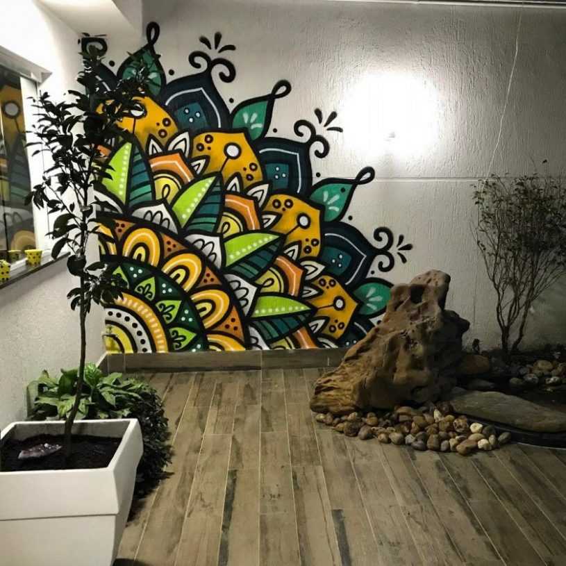 Так как в интерьере роспись сама по себе является акцентом, в маленьких помещениях не стоит использовать яркие оттенки — возможна черно-белая гамма или вообще рисунок одним цветом.