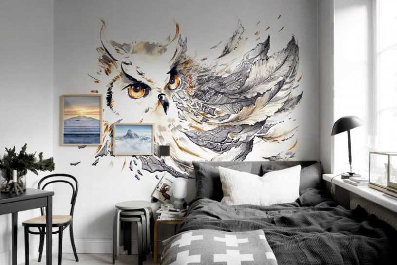 Поскольку роспись в интерьере считается акцентом, то в небольших комнатах не нужно применять красочные цвета — можно применять черно-белую палитру либо вообще изображение с одной расцветкой.