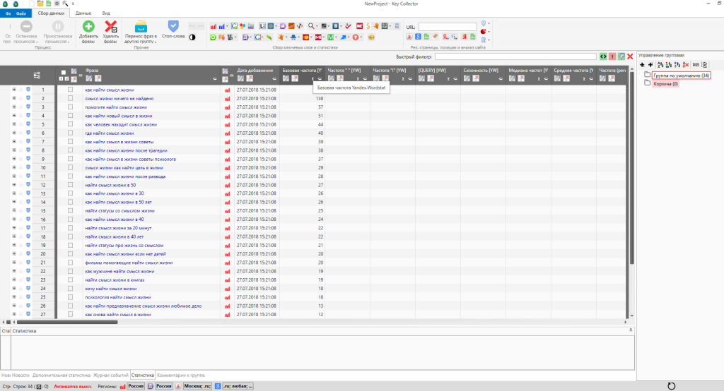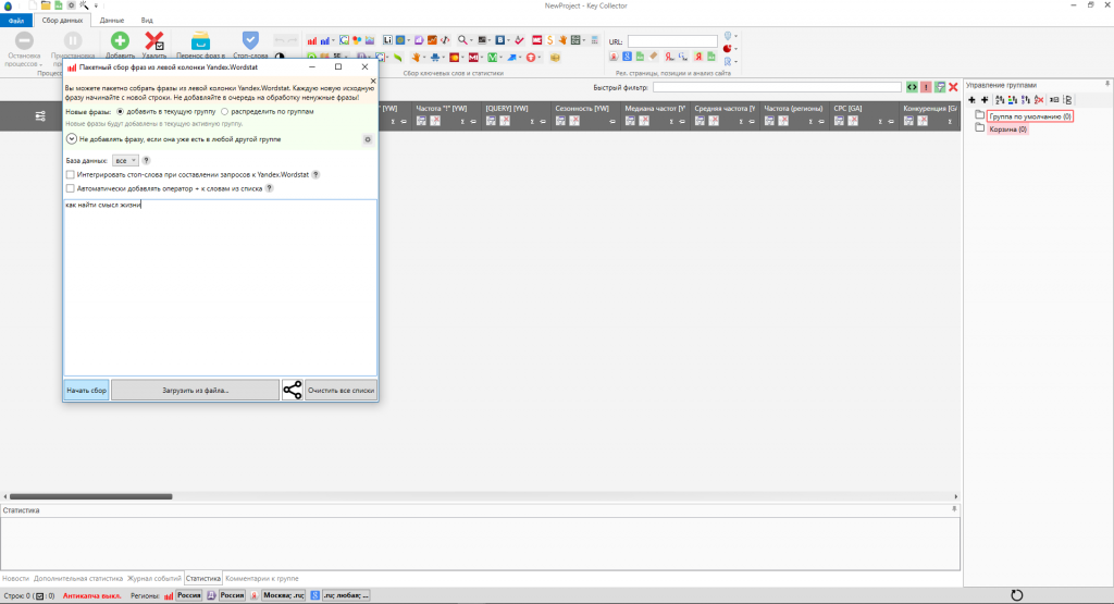 Key Collector можно гибко настраивать или, если нет навыков, доверять предложениям программы