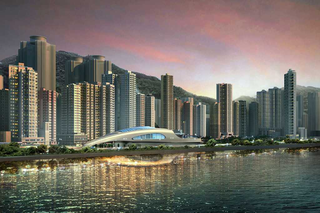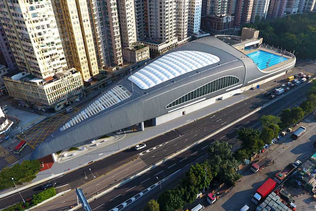 Проектируемую станцию Kennedy немного сместили, чтобы сохранить столетние деревья. Но тогда пришлось пожертвовать городским бассейном. Для строительства нового выбрали заброшенную парковку с прекрасным видом на бухту Виктория. Здание, по форме напоминающее броненосца с характерным «хвостом», вмещает 50-метровый бассейн и зону отдыха в открытой широкой части, а под вытянутой треугольной крышей, выложенной цинковыми панелями, располагаются еще два подогреваемых бассейна (50 и 25 метров) и джакузи. Особые жалюзи в крыше обеспечивают хороший уровень естественной освещенности, а протяженное боковое окно — виды на гавань.