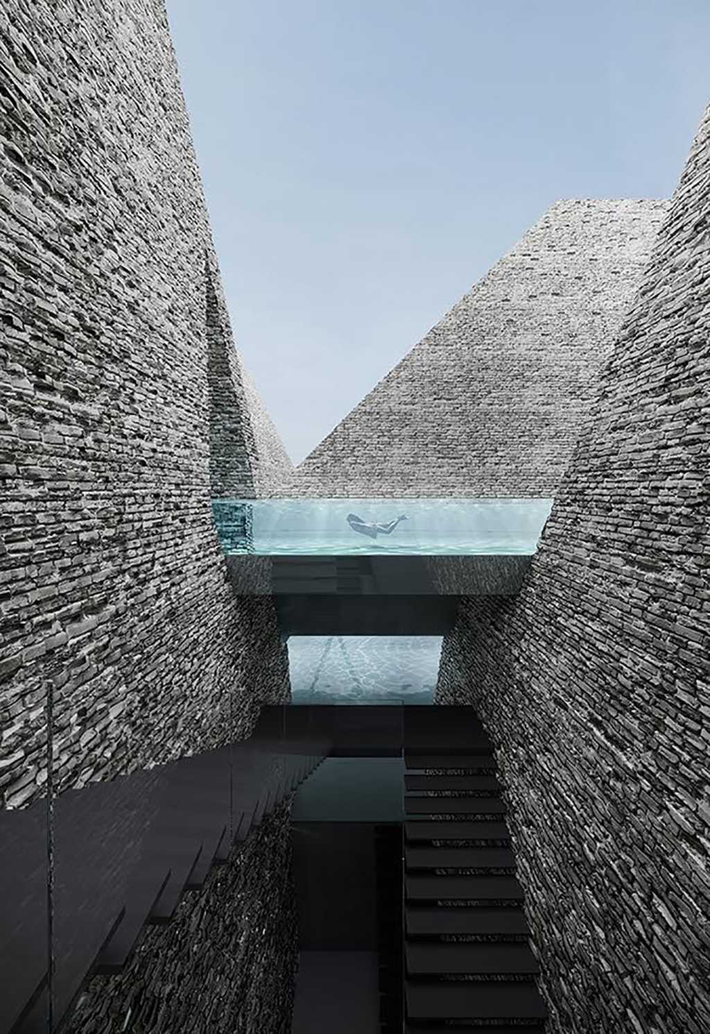 Звездное японское бюро пока еще только выиграло международный конкурс на постройку этого центра. Если проект будет реализован, то угловую часть так называемого Бумажного острова в портовом районе столицы Дании займет культурный центр с общественными купальнями. Пирамидальной формы кирпичные объемы отвечают за контекстуальность постройки и узнаваемость силуэта со всех возможных видовых точек. Они получат живую, перфорированную поверхность, так что в темное время суток, особенно поздней осенью и зимой, весь комплекс должен мягко и призывно светиться. А в ясные и длинные летние дни расположенные внутри бассейны, в том числе и подогреваемый, поразят эффектной игрой светотени. К воде комплекс спустится уступами террас, обеспечивая теснейшую связь городского пространства с акваторией.