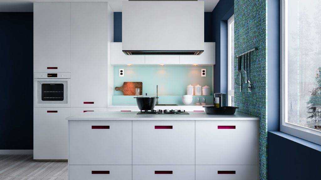 Лучше всего отдать предпочтение малогабаритной и угловой кухне. Они позволяют разместить больше вещей. Сделайте фасад шкафчиков гладким и без ручек. В цветовой гамме выберите светлые и приглушенные оттенки. Они естественным образом отражают свет и расширяют комнату.