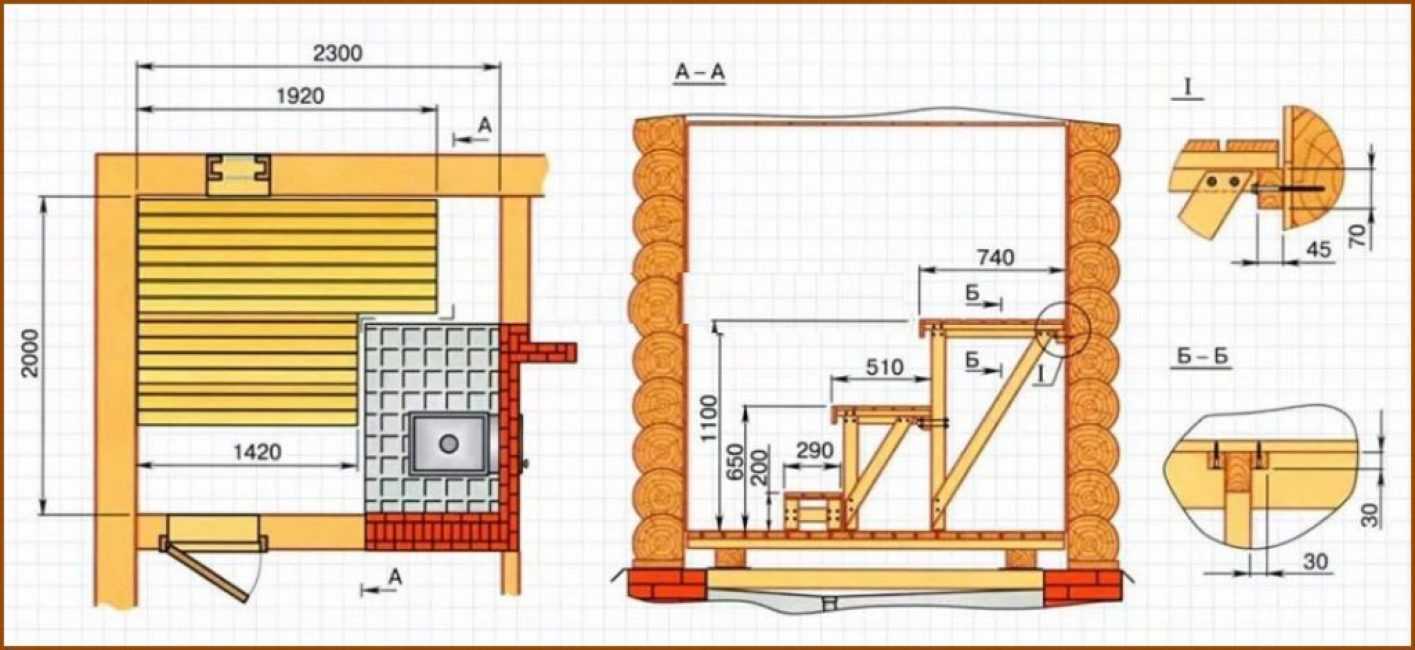 Габариты же парилки минимальны. Если посещать баню будет одновременно несколько человек, то на каждого из них необходимо выделить по 1,5 м.