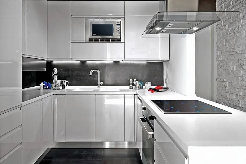 Белая угловая кухня с хромированными элементамиИсточник vash-vybor.info