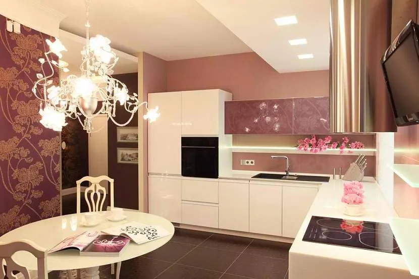 - Имеет значение выбор цветовой гаммы гарнитура и остальных поверхностей кухни. Оптимальный вариант – светлые оттенки. Они подойдут для взрослых и детей. Отсутствие агрессивных ноток внесет в атмосферу кухонного пространства уют и умиротворение.
