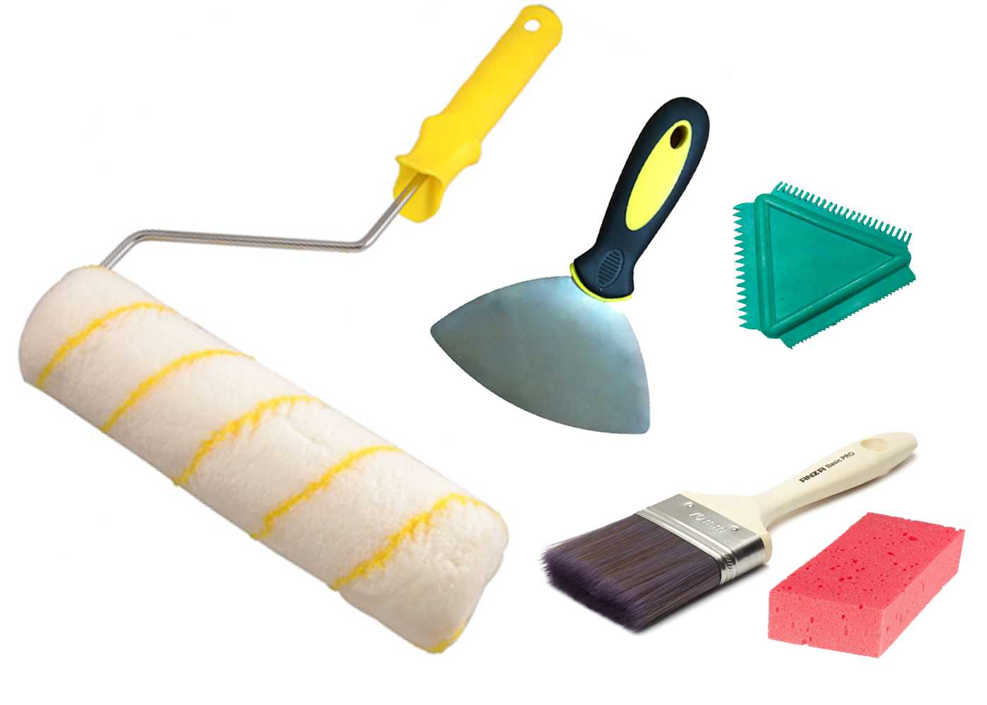 - валик малярный и кисть для грунтовки, а на втором этапе — для клея;