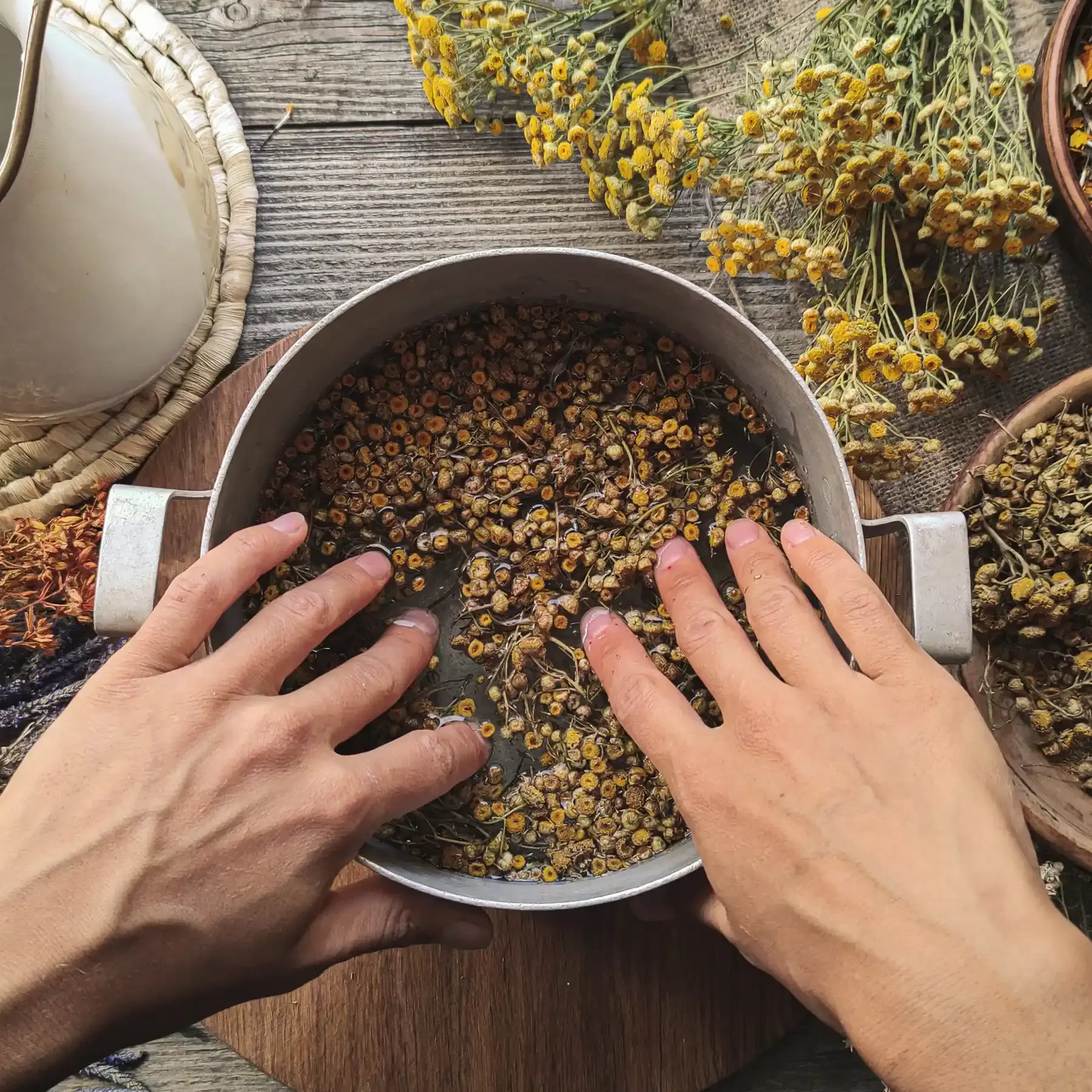 Замочите выбранное растение (в нашем случае пижму) в воде в течение суток. Лучше всего использовать кастрюлю из нержавеющей стали для этого этапа.