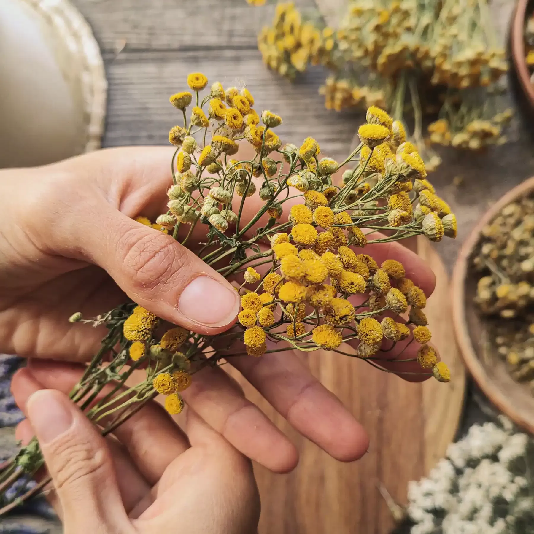 Выберите растение для окрашивания и высушите его. В сегодняшнем мастер-классе я буду использовать пижму. Для того, чтобы ткань окрасилась максимально насыщенно, то я советую придерживаться такой пропорции: 1 грамм сухого растения на 1 грамм ткани.