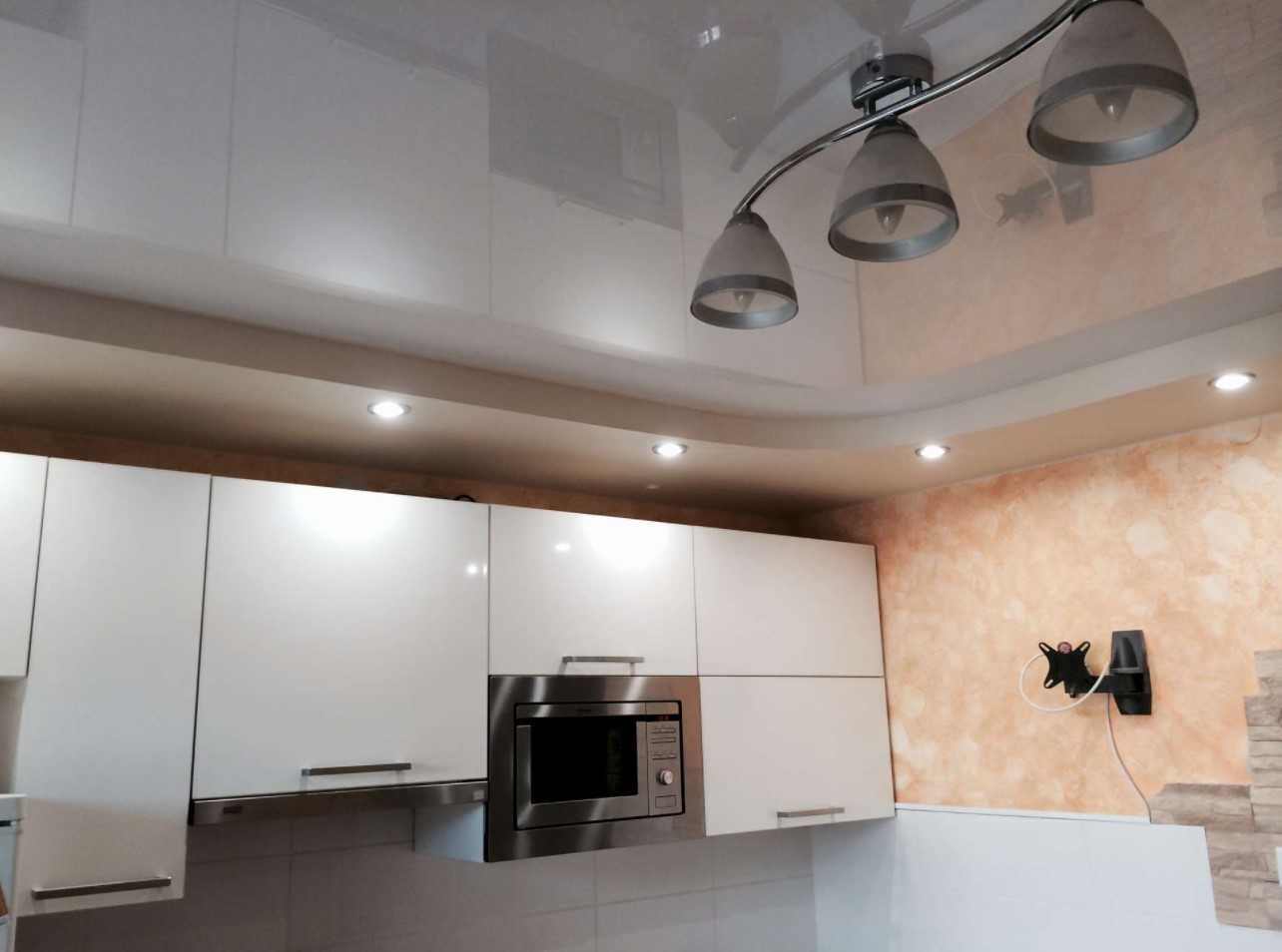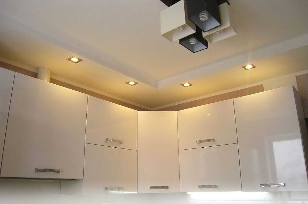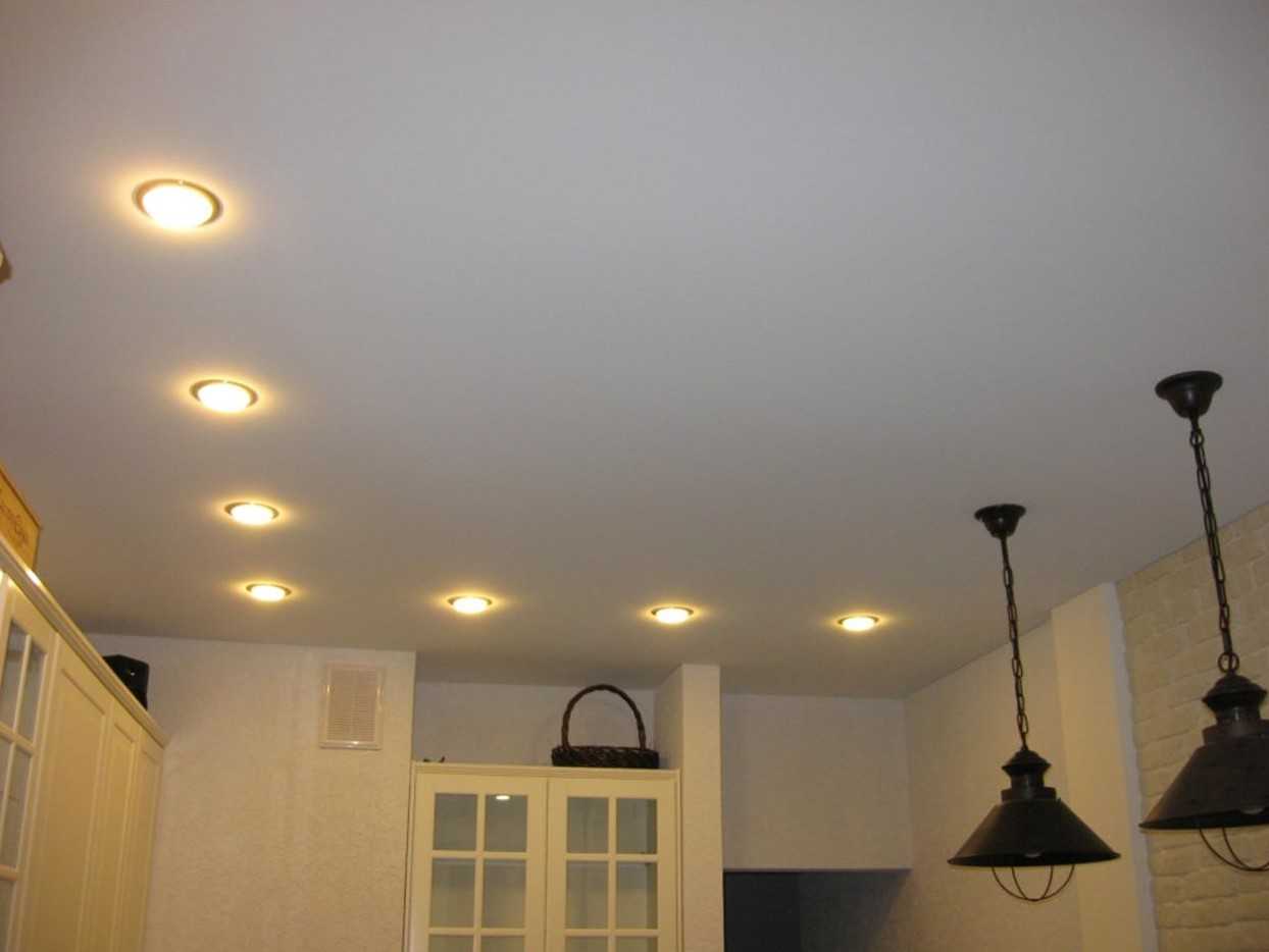 Освещение на кухне с натяжным потолком фото